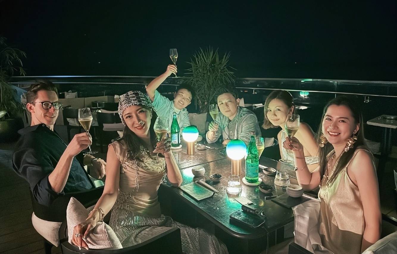 到了晚上,许婧在酒店的露台上,又和亲友搞了一场烛光晚餐。