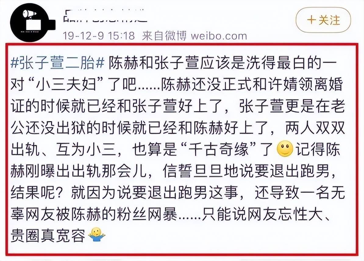 陈赫发表了《我错了》之后,张子萱也发文承认和陈赫走到了一起,这俩都当网友们失忆了吗?